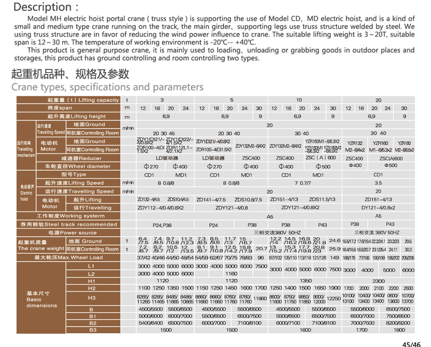 MH型電動葫蘆門式起重機(jī)(桁架式)與CD、MD等型號的電動葫蘆配套使用,是一種有軌運(yùn)行的中小型起重機(jī),主梁、支腿采用型鋼焊接成桁架結(jié)構(gòu),采用桁架結(jié)構(gòu)重量輕,有利于減小風(fēng)力對起重機(jī)的影響。其適用起重量3`16T,適用跨度12~30米。工作環(huán)境-20℃-+40℃內(nèi)。 本產(chǎn)品為一般用途起重機(jī),多用于露天場所及倉庫的裝卸或抓取物料,本產(chǎn)品有地面操縱和室內(nèi)操縱兩種